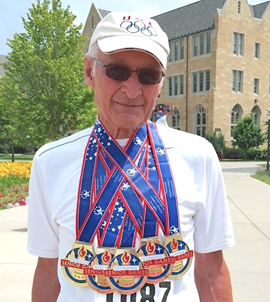 At this spring’s National Senior Games in Fort Lauderdale, Don entered 13 events and won eight gold medals in the 90-94 age group. He earlier won five golds at the 2015 event.